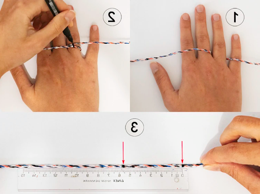 Ce dont vous avez besoin : un fil fin (ou une bandelette de papier d’environ 1 cm de large), un stylo et une règle graduée en millimètres.