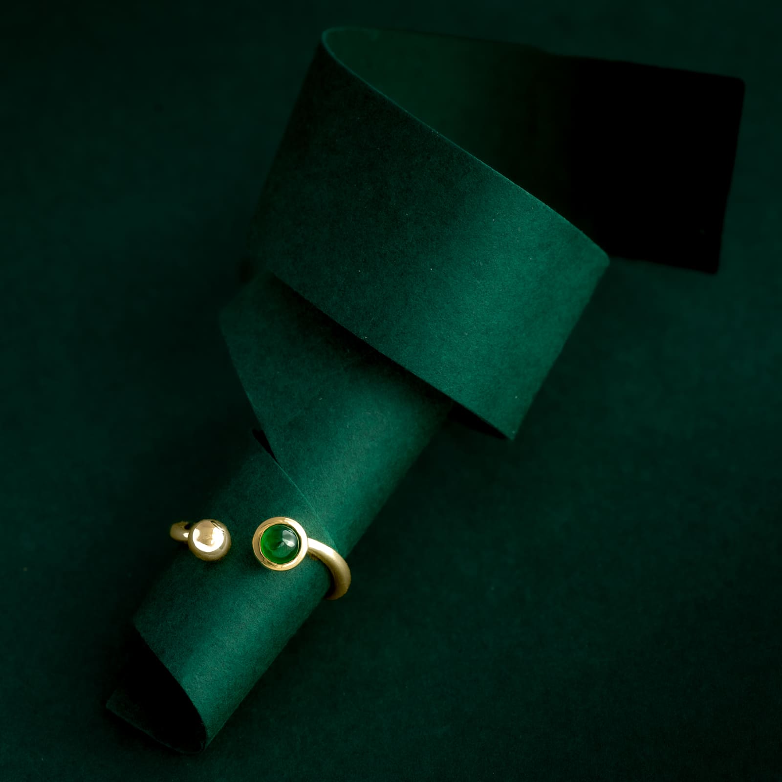 Discrète bague portant un cabochon de jadéite impériale certifié. Une pierre rare, choisie pour sa pureté et l’évidence de sa couleur. Un vert profond, vivant, qui ne cherche ni éclat ni artifice,mais impose sa présence par la justesse.