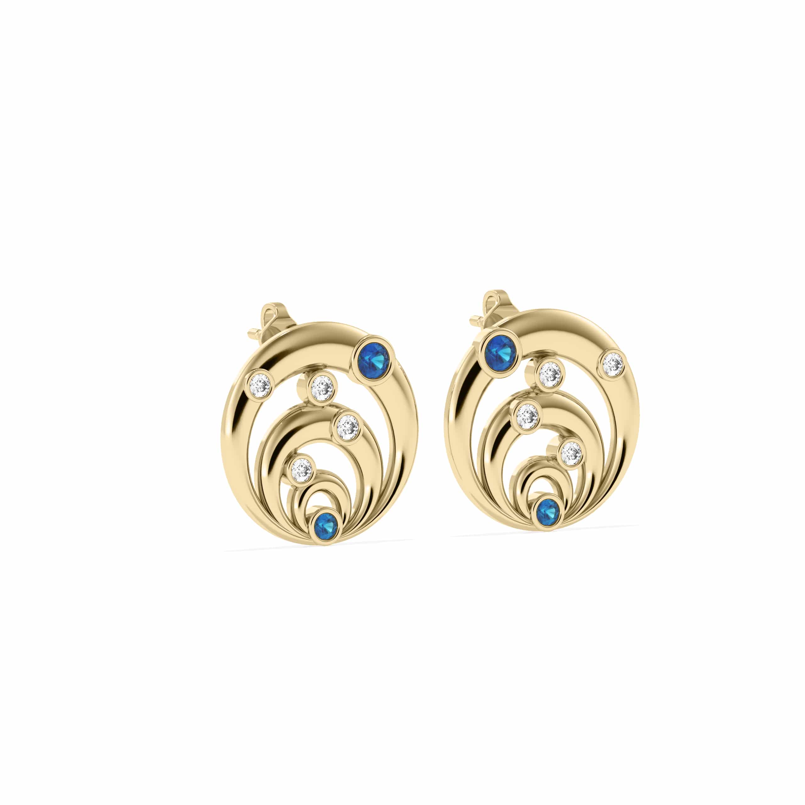 Deux boucles d’oreilles en or jaune 18 carats 750 brillent comme les halos de lumière d’une précieuse aurore boréale. Leur saphir de Ceylan bleu 0,10 carats envoûte par leur splendeur et leur luisance. Ils courtisent avec la délicatesse des diamants naturels 0,10 carats telle la une révérence royale.