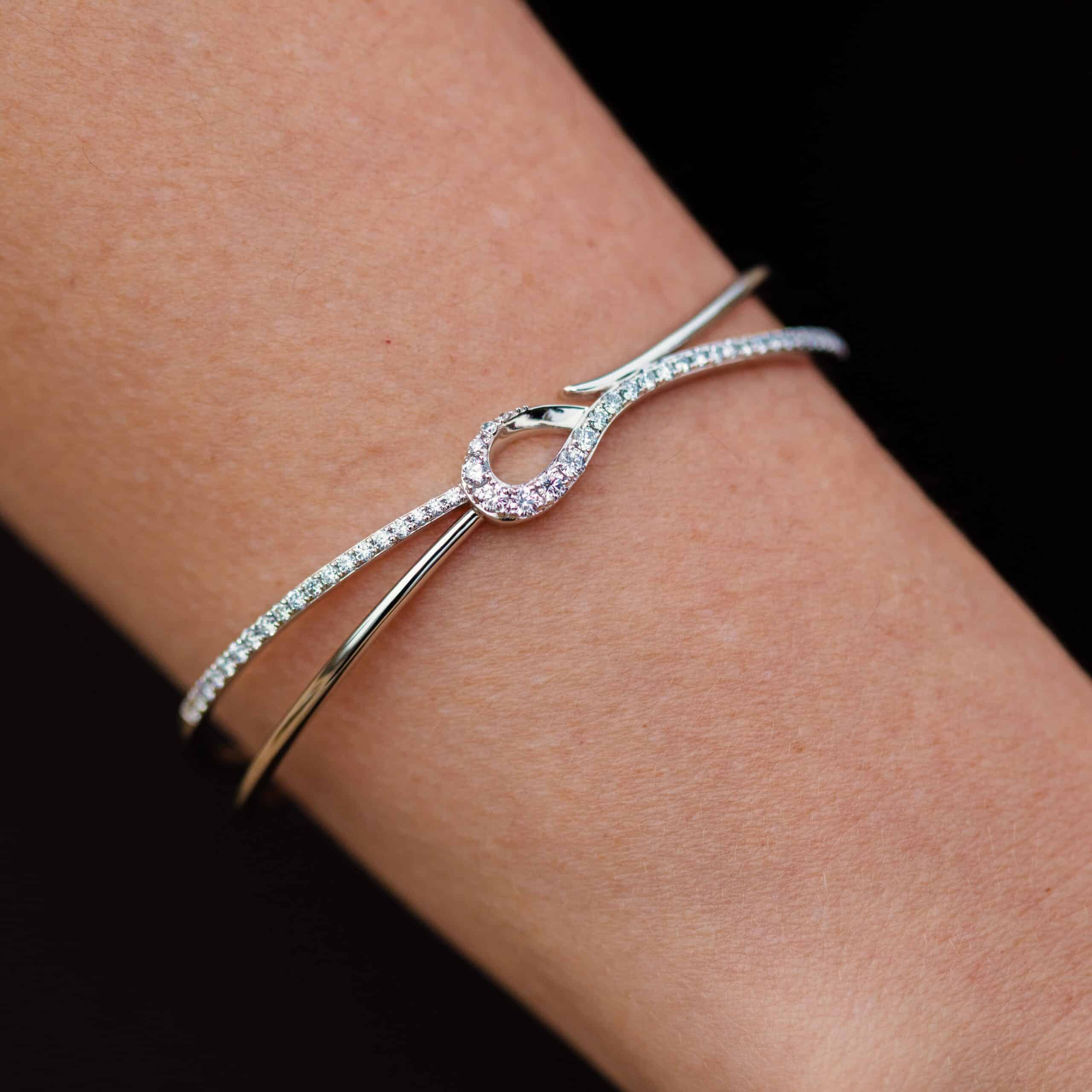 Léger et d’une finesse remarquable, ce bracelet jonc en platine 950 incarne l’élégance en mouvement. Modelé avec harmonie et ponctué de diamants naturels, 2,40 carats, il évoque les ondulations de l’eau et s’impose comme un compagnon précieux, discret et fidèle.